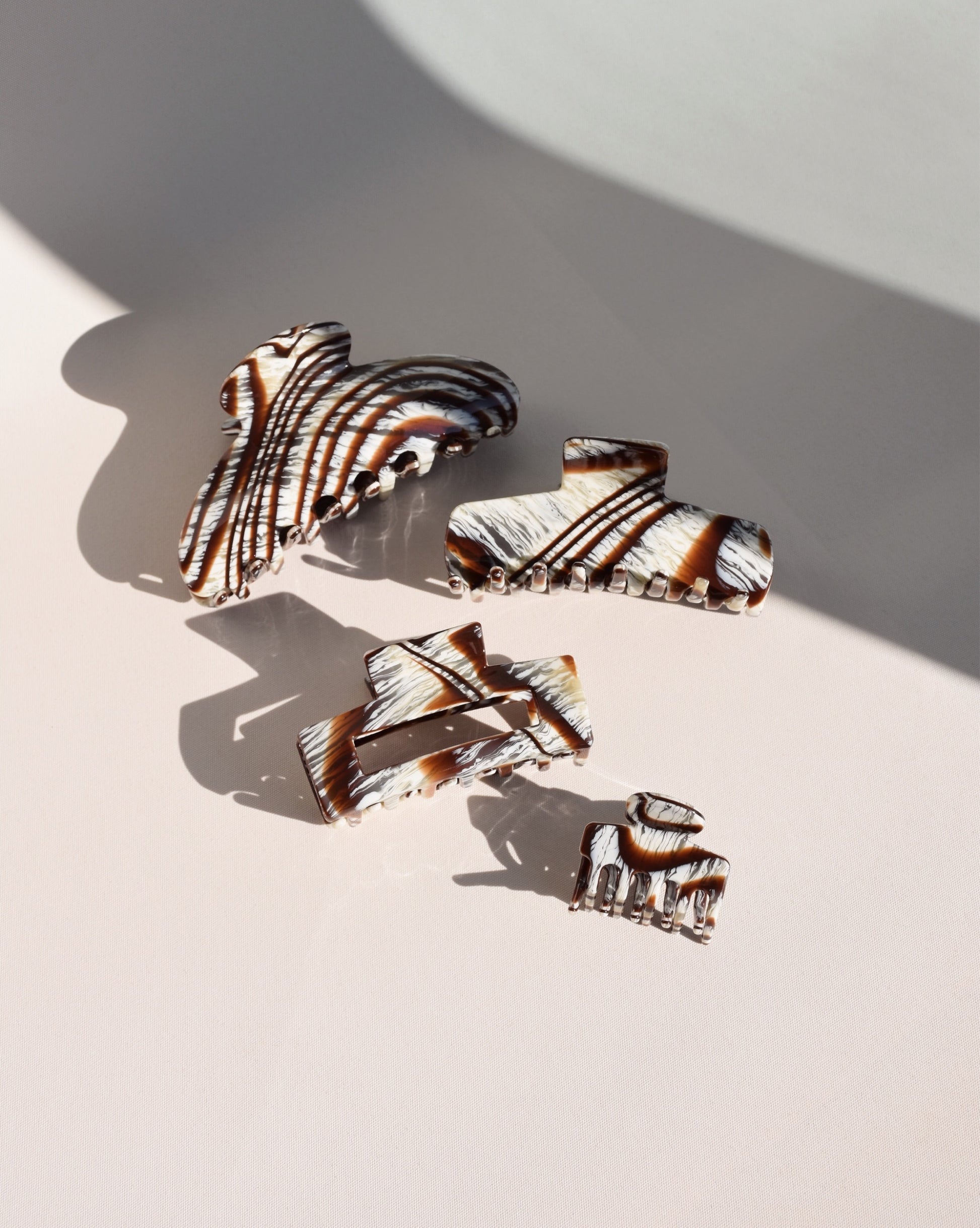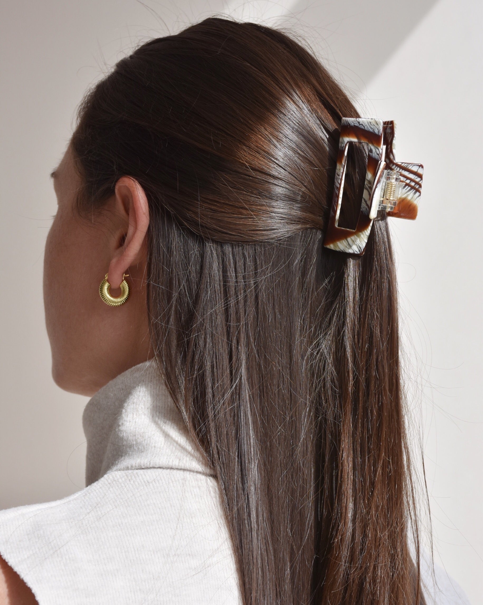Mit seinem einzigartigen Muster und wunderschönen Erdtönen ist dieser Krallenclip ein wahres Statement-Piece, das jede Frisur aufwertet. Es ist nicht nur ein stilvolles Accessoire, sondern auch für die Ewigkeit gebaut. Aus hochwertigen Materialien gefertigt und mit super starkem Halt hält diese Krallenklammer Ihr Haar den ganzen Tag an Ort und Stelle. Der Midi Krallenclip funktioniert hervorragend für Half-Up-Half-Down-Styles bei allen Haartypen und ist auch perfekt für volle Hochsteckfrisuren auf kurzem dickem Haar oder mittellangem feinem Haar.