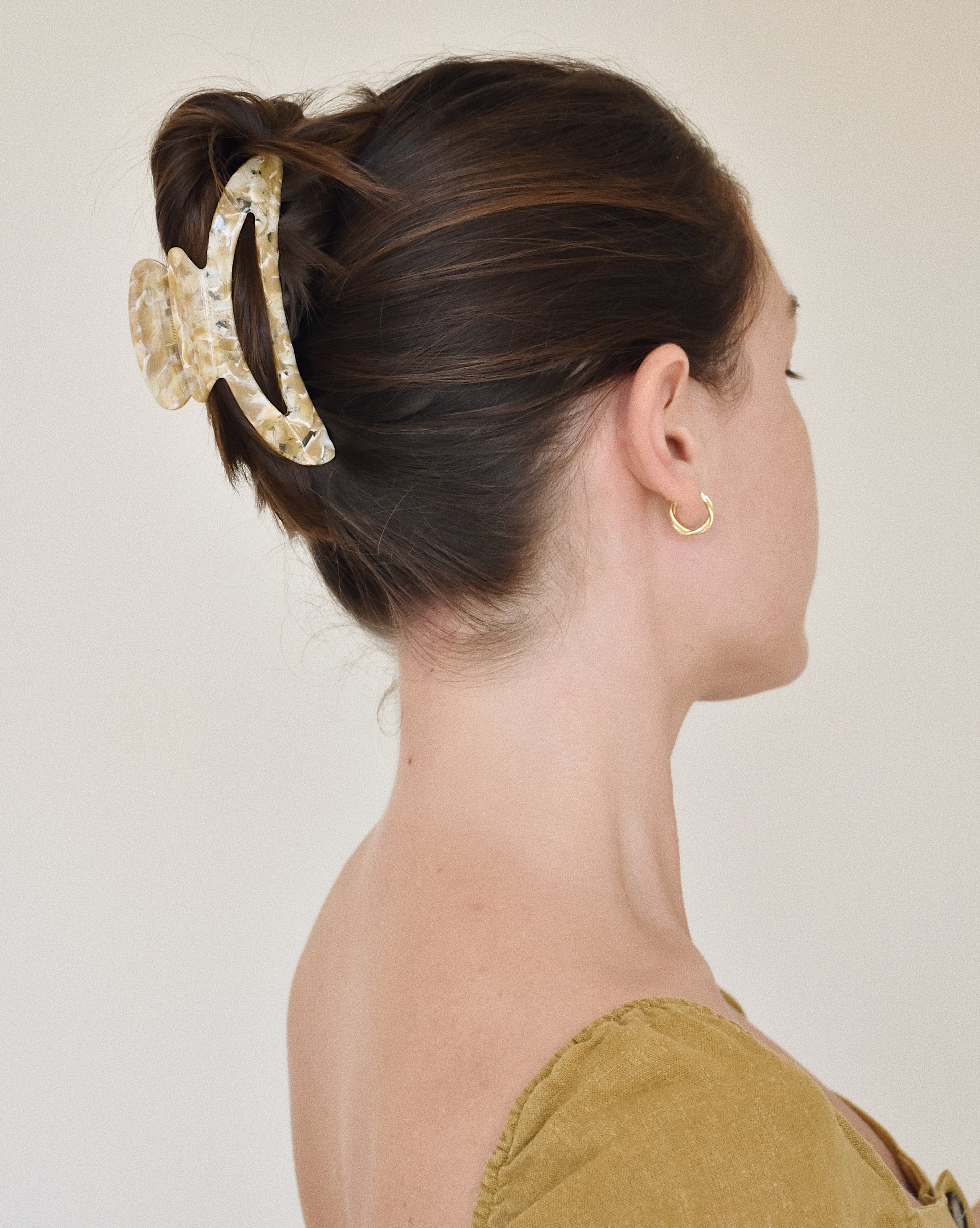 Moon Claw Clip in Beige Granite