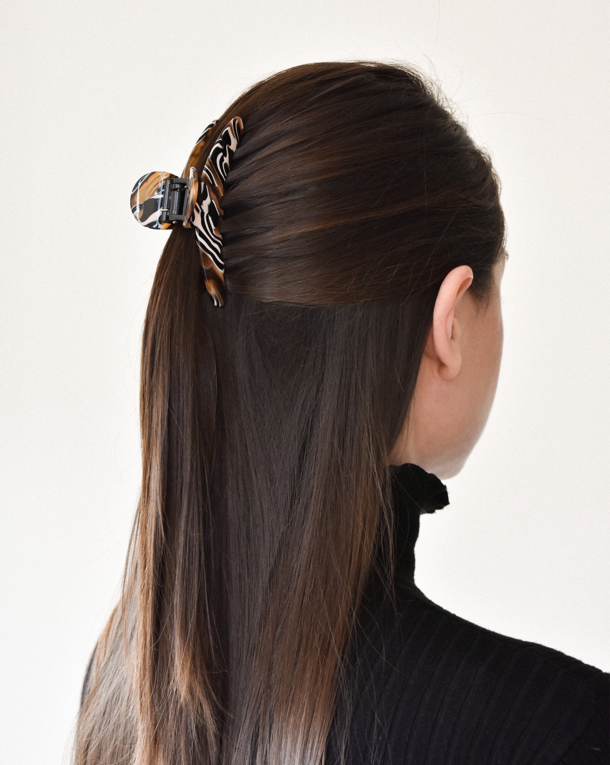 To ensure you keep your hair claw in excellent condition we recommend to securely store it when you are not wearing it and clean it regularly with lukewarm water and gentle soap to remove hair oils and dirt.