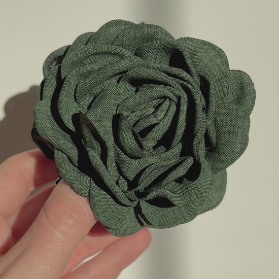 Pinza de Flor de Camelia en Color Verde Oscuro
