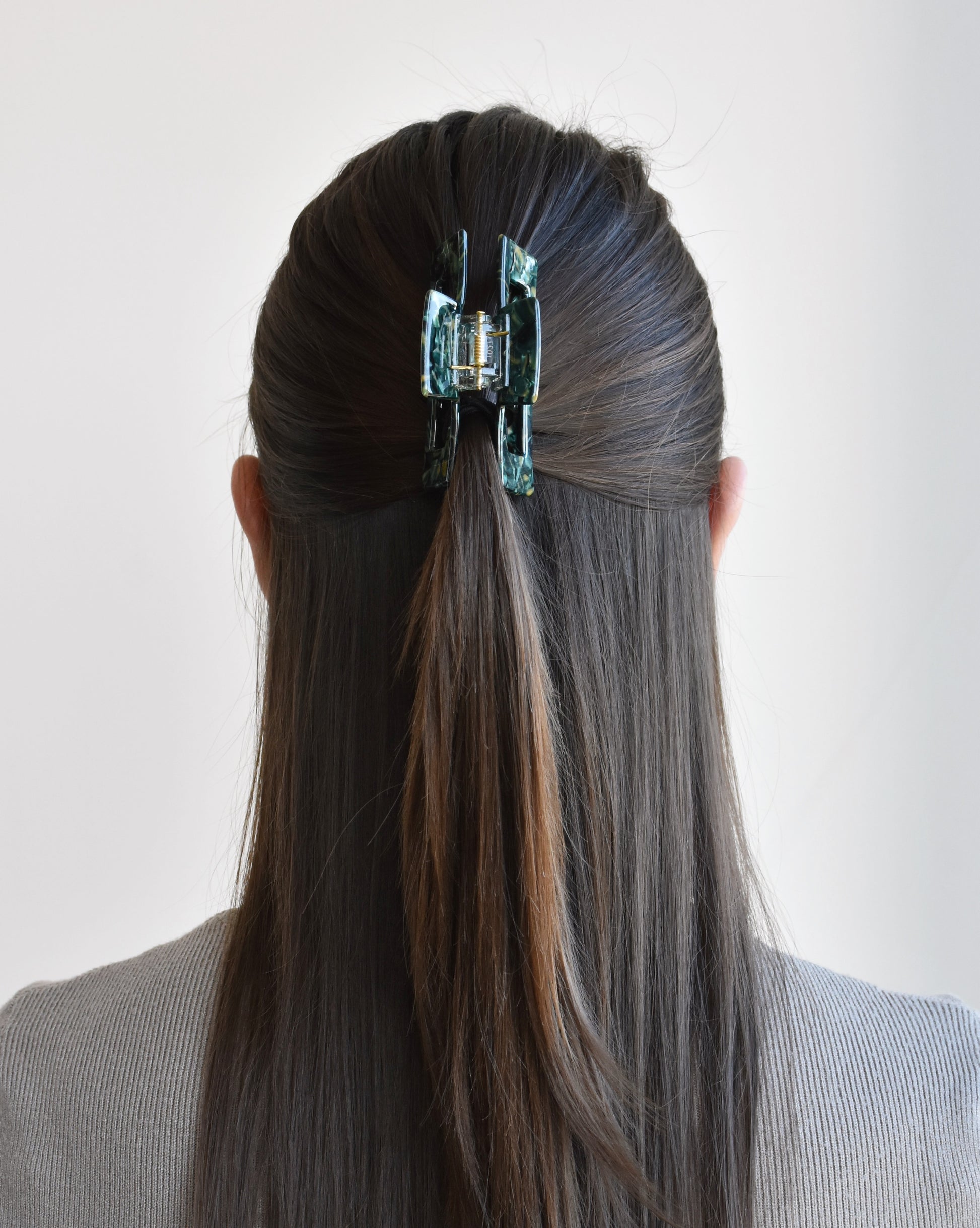 A hair claw designed to adorn and enhance every hair type with ease. Crafted from premium cellulose acetate, it embodies both strength and sophistication, ensuring durability for long-term use. Its medium size make it the ideal choice for half-up half-down styles regardless of hair type.